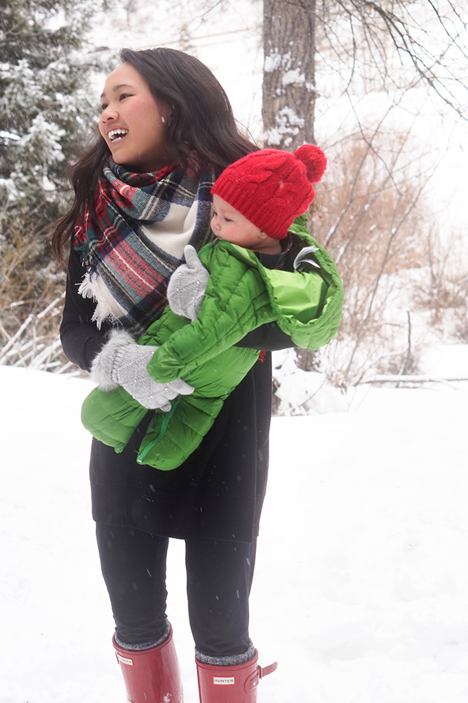 TUNIC: Loft // LEGGINGS: BP // SHOES: Hunter // SCARF: ASOS // EARRINGS: Baublebar // GLOVES: Nordstrom // SOCKS: BP // Liam- BUNTING: Patagonia (sold out, similar here)